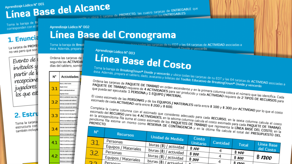 - Haber trabajado previamente las aplicaciones de aprendizaje lúdico de la Línea Base del Alcance, la Línea Base del Cronograma y la Línea Base de Costos